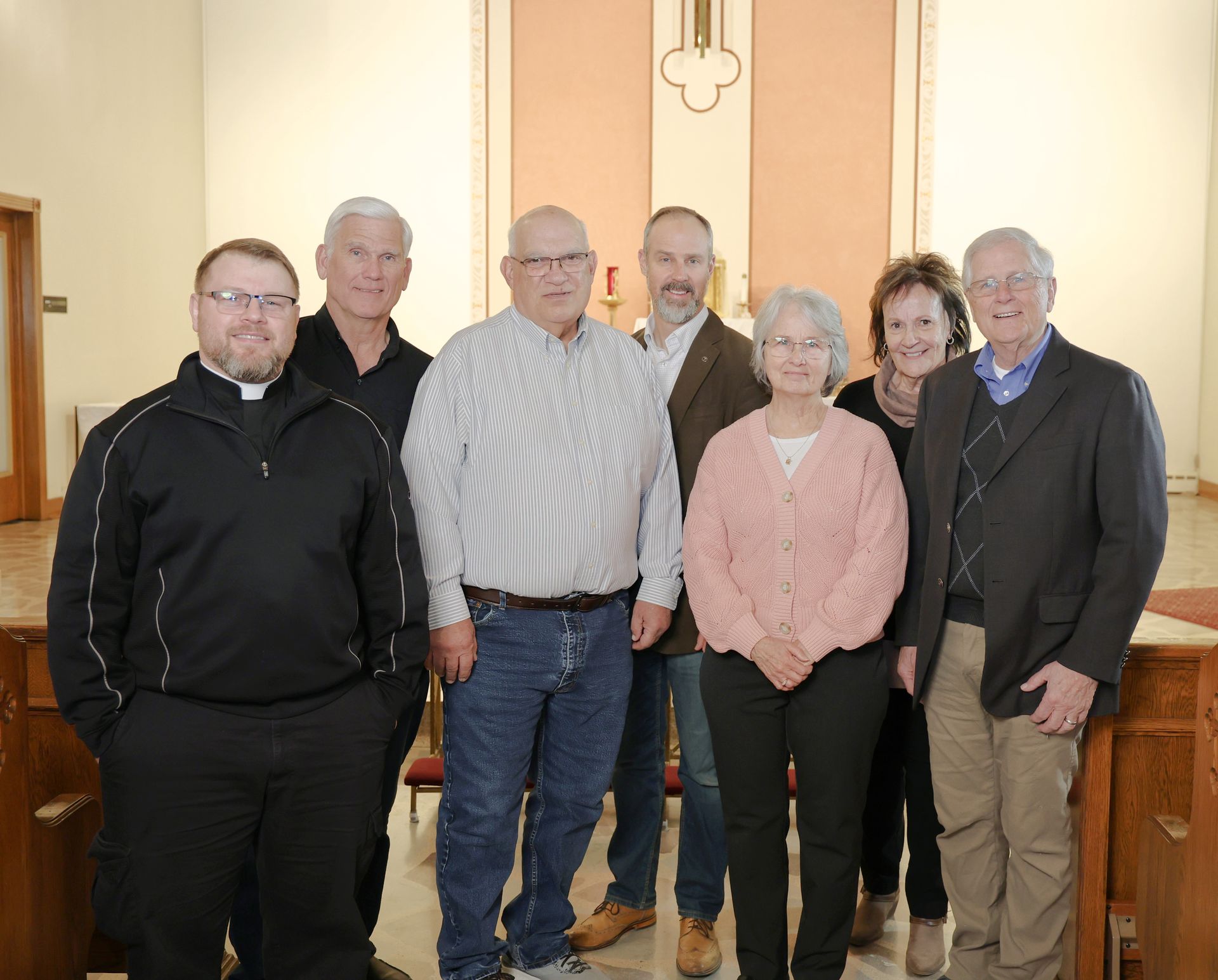 From Left to Right: Fr. Ben Boyd, Deacon Al Aulner, Deacon Subby Enzolera, Jim Jansen, Jackie Kmiecik, Marie Savine, Deacon Tom Schulte. Not pictured: Evan Collins