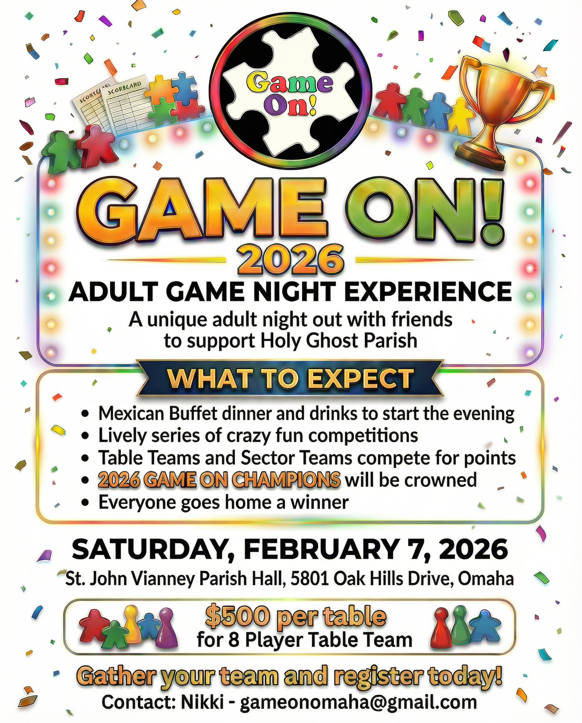 Join us for GAME ON 2026, a high-energy adult game night filled with friendly competition, laughter, and community — all in support of Holy Ghost Parish.