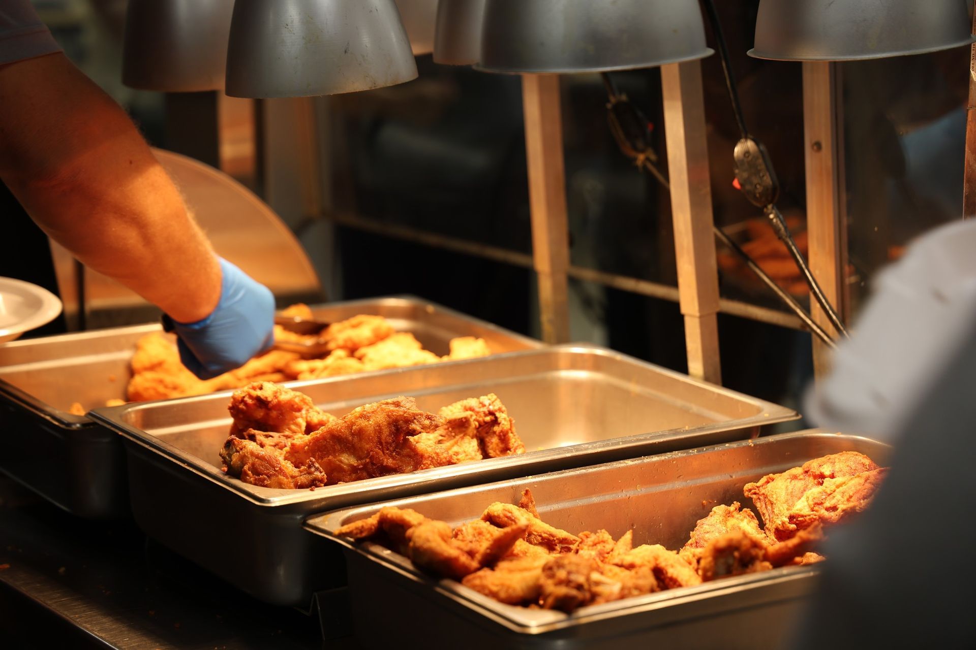 All dinners include mashed potatoes & gravy, veggie, roll & soda